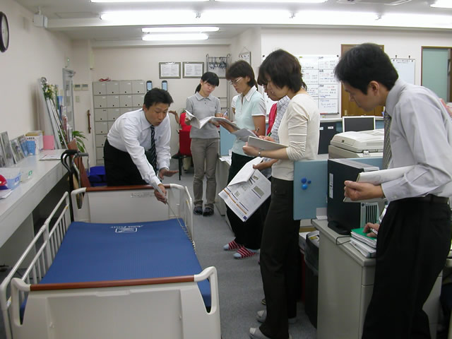 そこで、簡単にベッドの下に差し込んで使用できる『たちあっぷ』という名称の手すりを提案し、納品に立会いました。