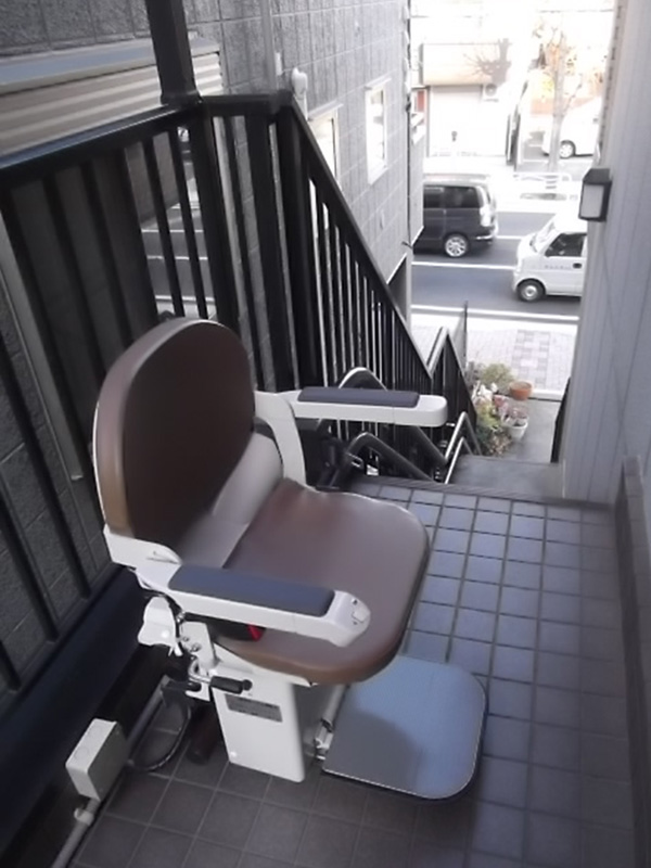 階段昇降機を付けることで座ったままで階段の昇降ができ、疲れることなくデイサービスに行き楽しく過ごされています。